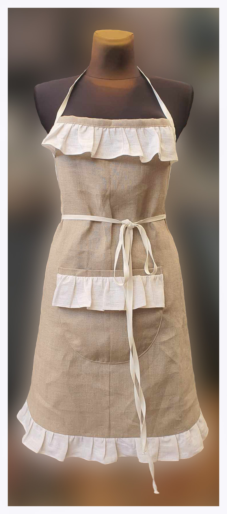 Natūralaus lino prijuostė, puošta nėriniais. Praktiška ir graži dovana norint nustebinti namų šeimininkę!