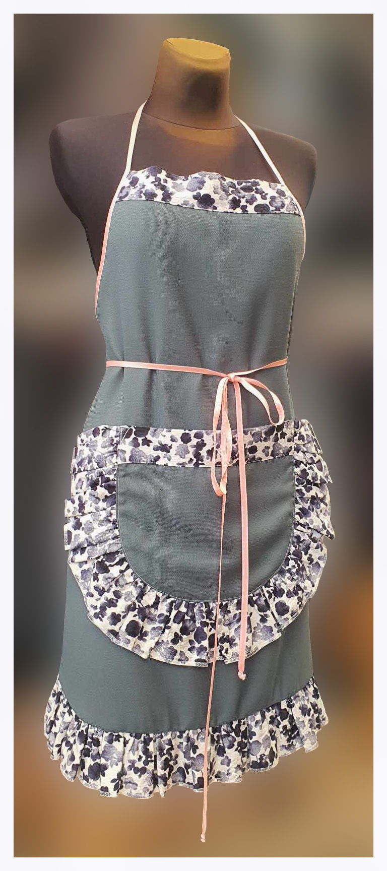 Puošni pusvilnės prijuostė stipri ir patvari, puikiai dėvisi, nereikalauja ypatingos priežiūros.