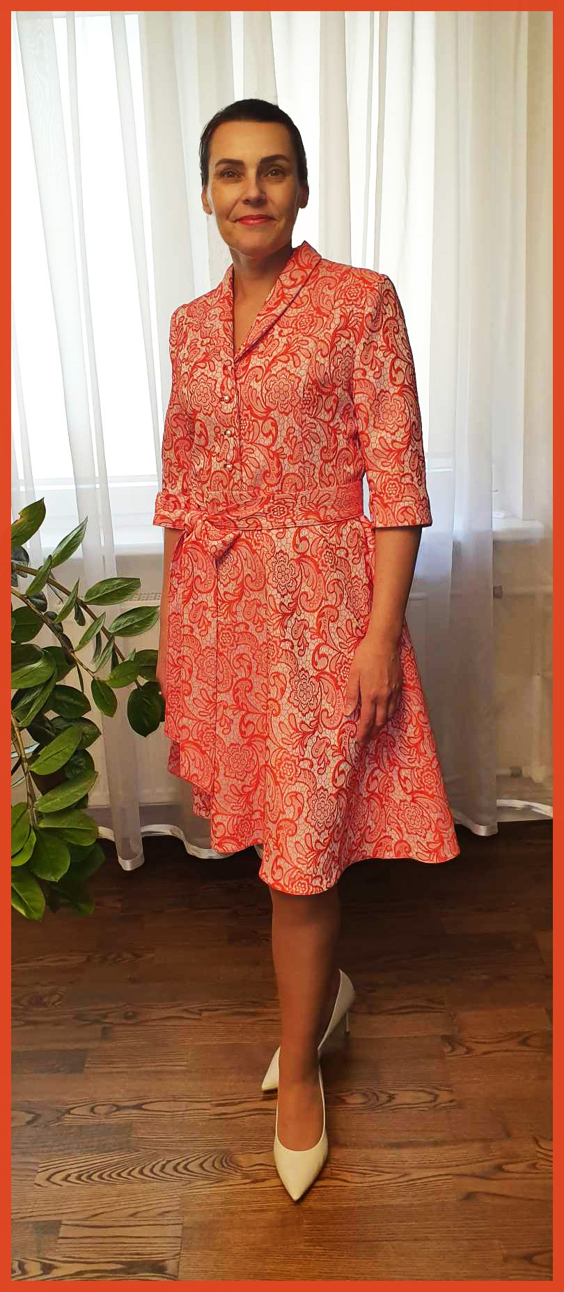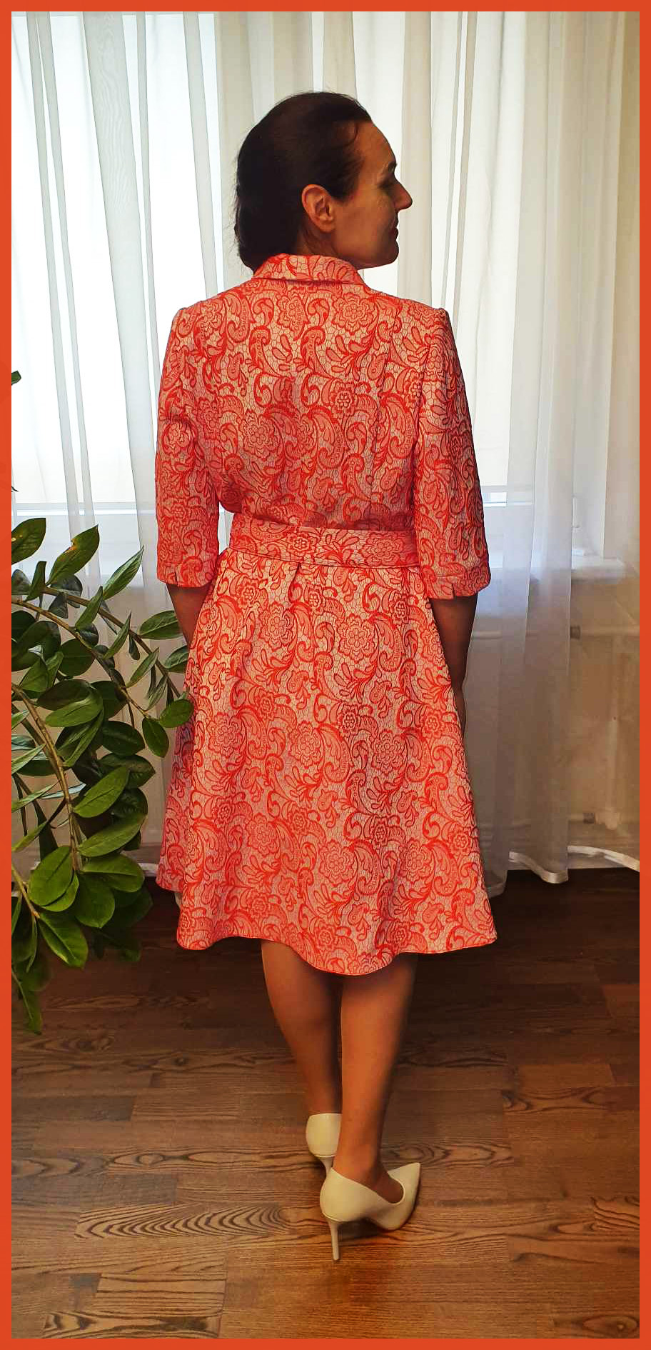 Prabangi žakardo suknelė ,,Rose” papuoš jus, Jūsų šventei! Suknelės priekis susagstomas perliukais, juosmo kirptas ir rišamas dirželis kuris pabrėžią liemenį. Turimas dydis XL, krūtinės apimtis iki 102cm, liemuo iki 90cm, suknelės ilgis 103cm.