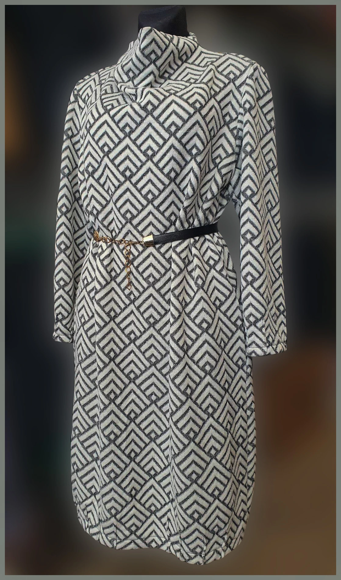 Šilta ir maloni prie kūno. Suknelė patogi, neįpareigojanti. Šoninėse siūlėse įsiūtos kišenės, suknelės apačia nusiaurinta tad puikiai tiks turinčioms obuoliuko figūrą. Norinčioms pabrėžti liemenį tai galima padaryti dirželiu. (Suknelė parduodama be dirželio).